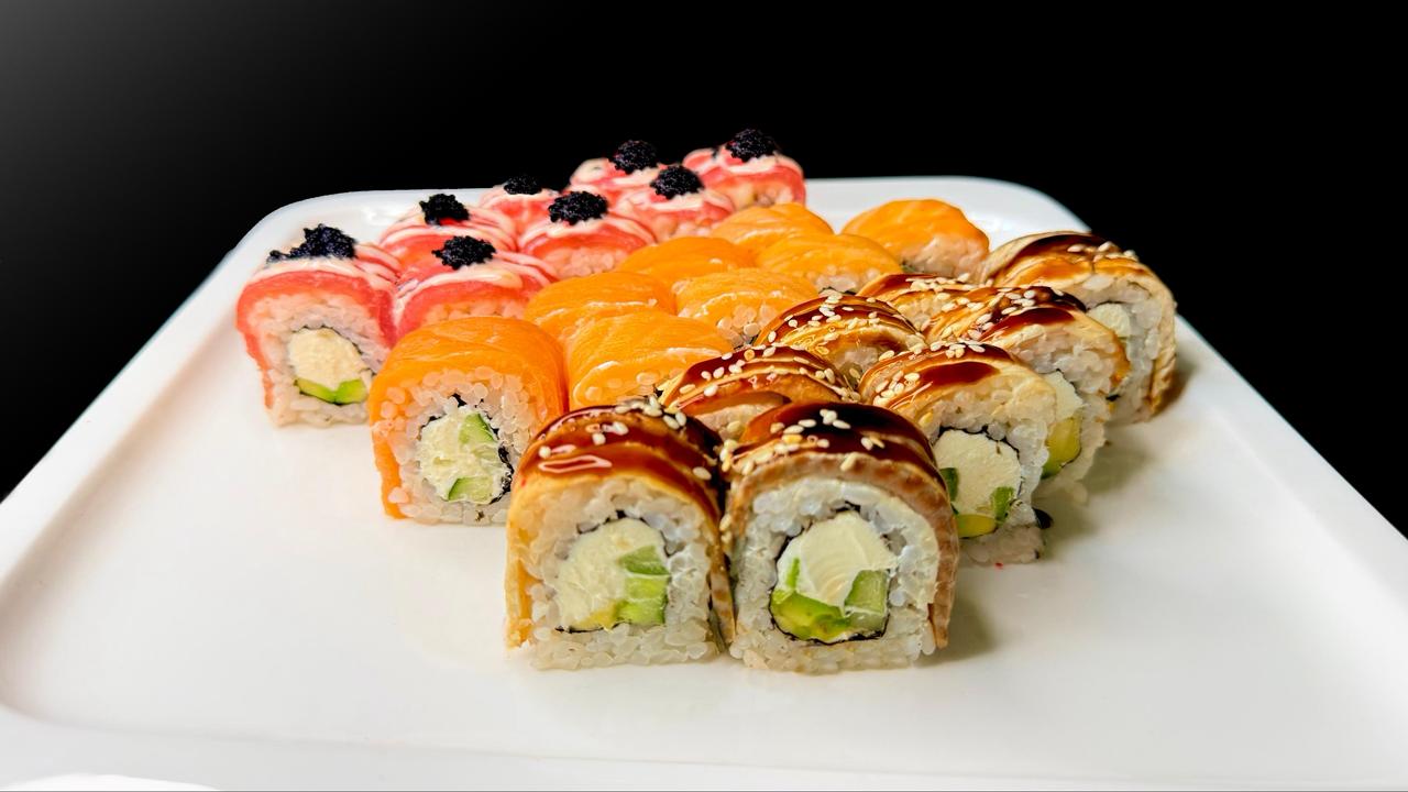 Филадельфия с лососем 8шт, Филадельфия с угрем 8шт, Филадельфия с тунцом 8шт, 24 шт