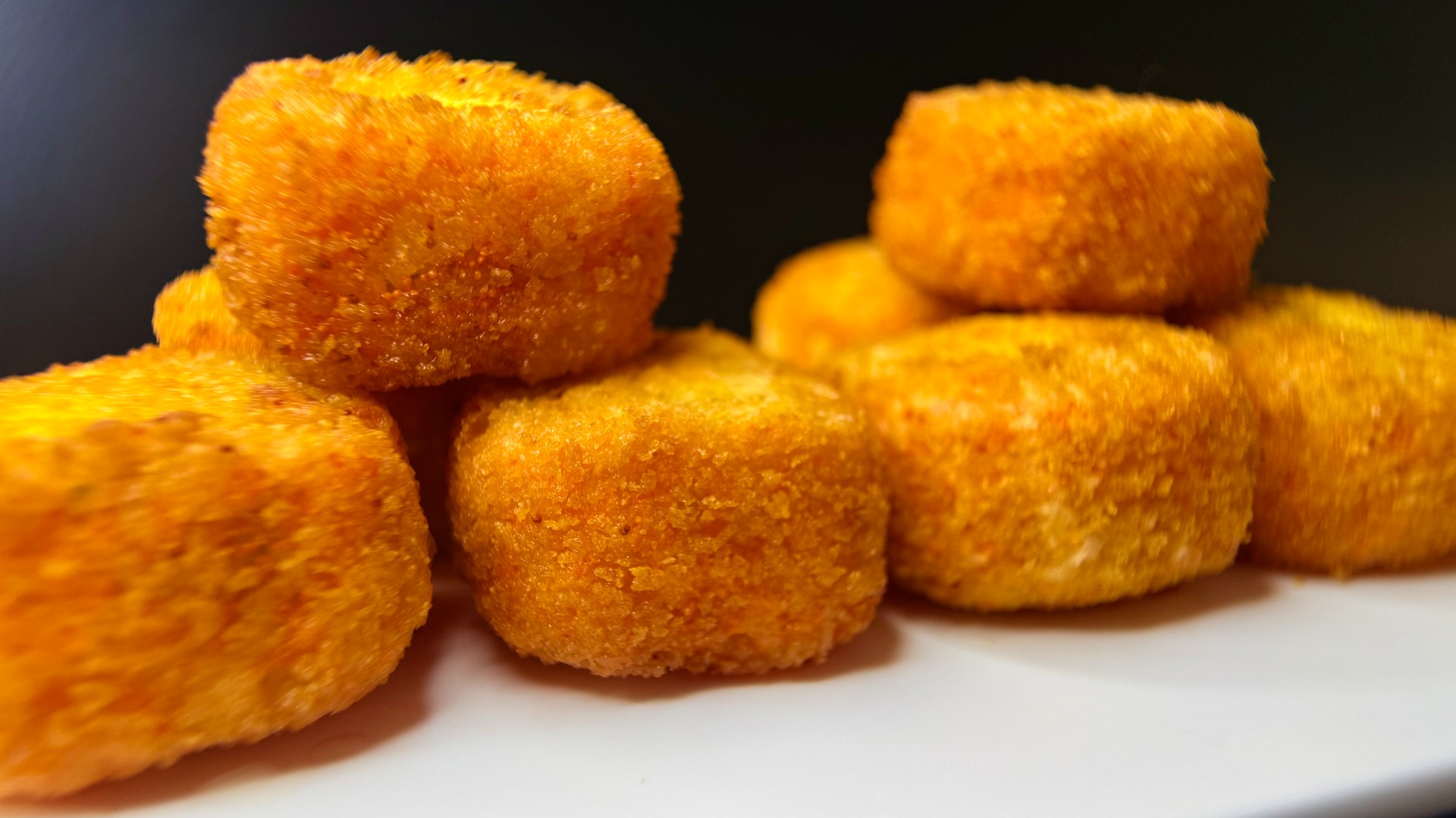 лосось охлажденный, авокадо, сыр творожный крем-чиз, икра масаго, сверху: кляр, сухари панированные. вес: 270 грамм