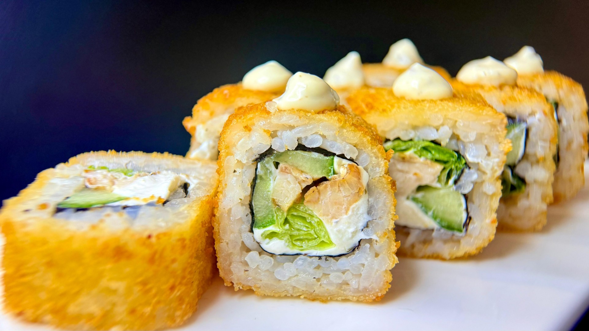 кура жареная, огурец свежий, салат айсберг, сыр творожный крем-чиз. сверху: кляр , сухари панированные, соус цезарь. вес: 250 грамм