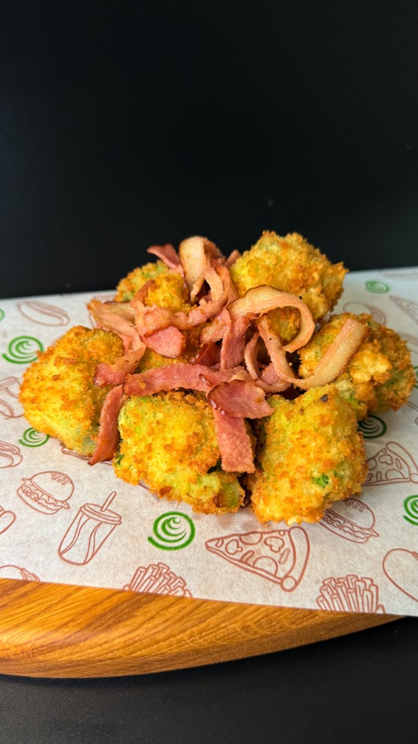 Брокколи в кляре, бекон жареный. Вес: 250 гр.